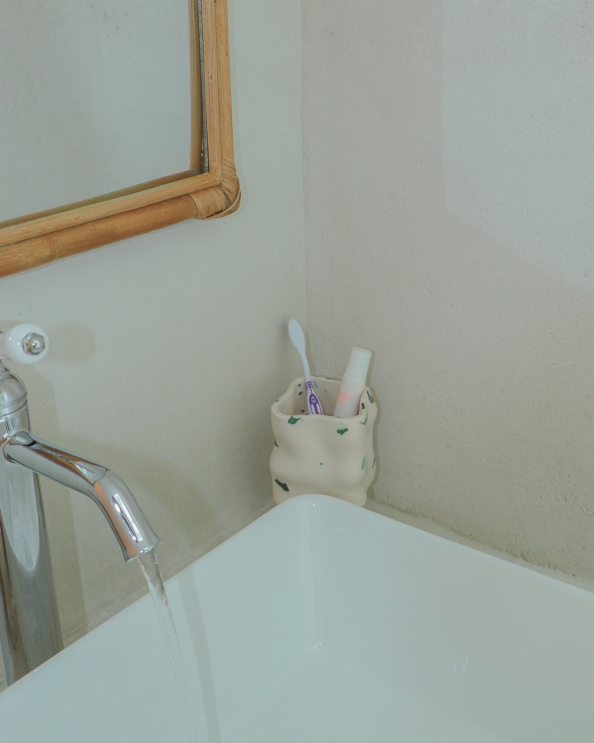La matière première de toutes nos créations est la jesmonite. Celle-ci est composée de poudre de gypse et d’un liant acrylique à base d’eau, ce qui en fait une alternative écologique aux résines traditionnelles à base de pétrole. La jesmonite est connue pour sa durabilité et sa résistance, tout en étant non toxique et non cancérigène. Son processus de fabrication nécessite moins d’énergie et génère moins de gaz à effet de serre. En choisissant ce matériau, on contribue à réduire notre empreinte carbone.